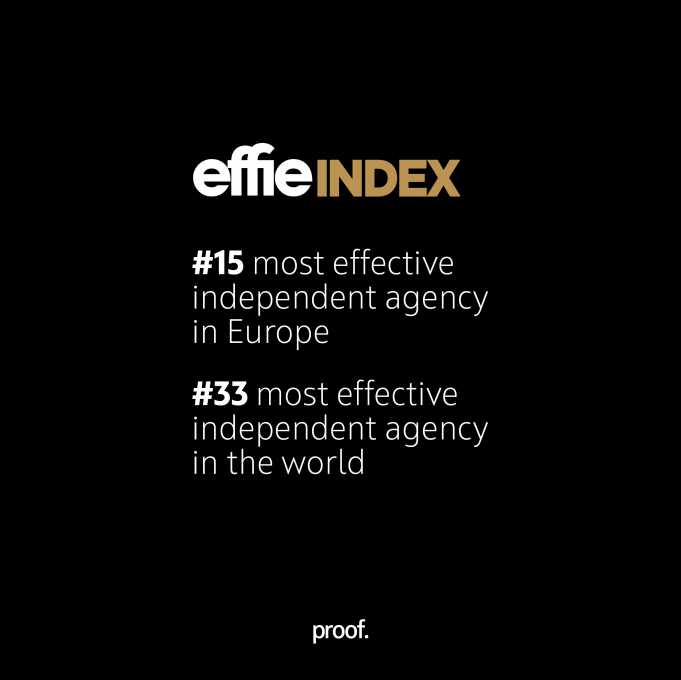 the 2022 effie index pointed out to us that we’re heading in the right direction. the work we did last year landed us at the 15th and 33rd spot among the most effective independent agencies in europe and the world respectively.